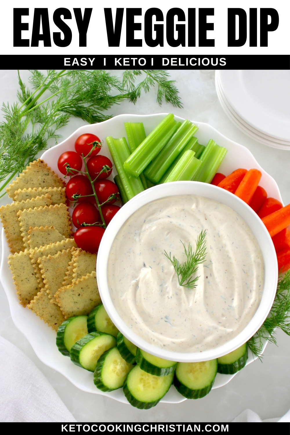 We all need a go to snack we can throw together in a snap and that is exactly what me inspired to make this easy veggie dip. It takes just a few minutes and always tastes cool, creamy, and fresh. You whisk everything in one bowl and it is ready for whatever veggies or Keto dippable snacks you like.