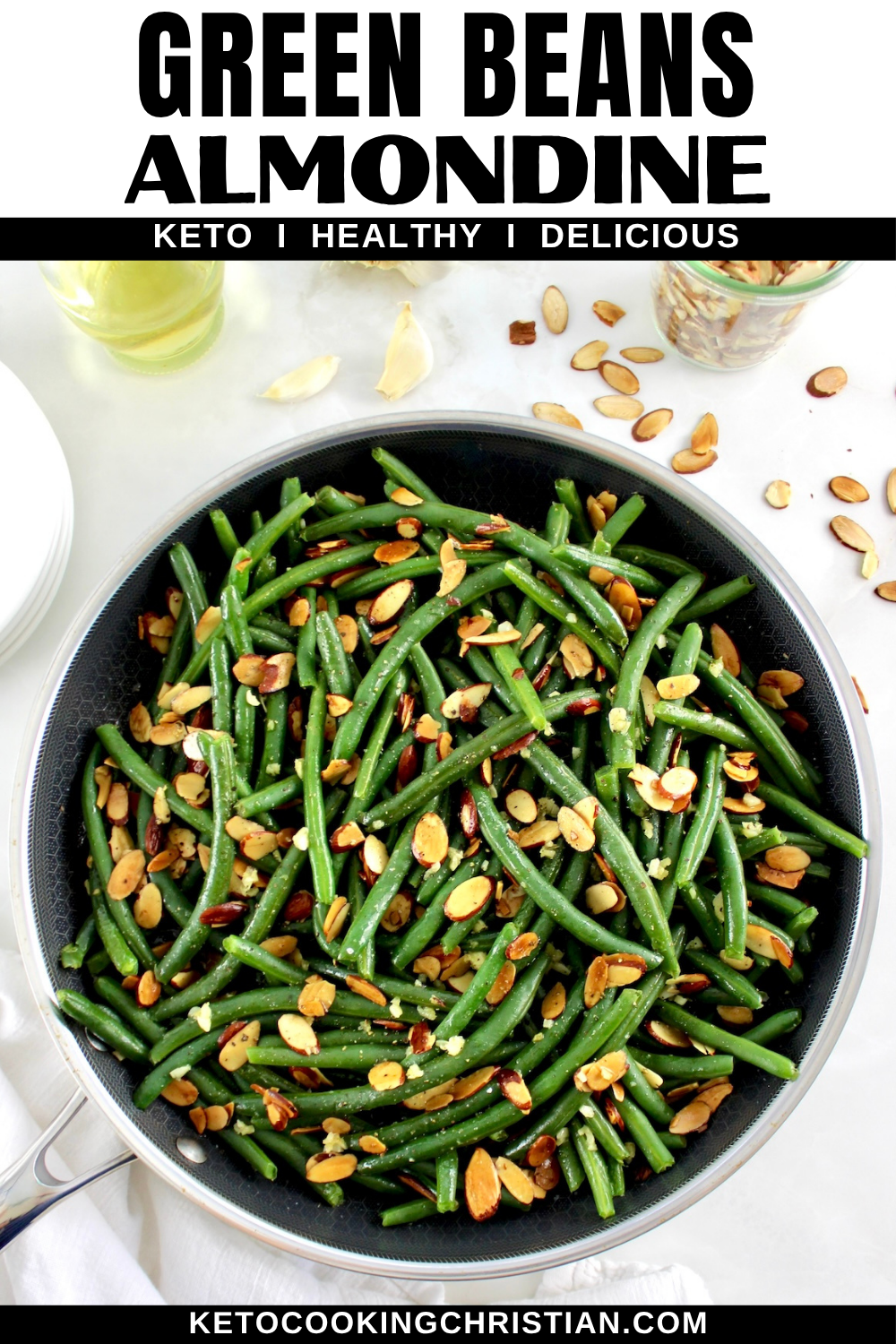 Almondine, or sometimes seen as Almandine, just means garnished with almonds. In the culinary world, you will sometimes see fish or other green vegetables, like asparagus used with Almondine. Regardless of which way you spell it, it’s a delicious way to add texture and flavor to green beans.