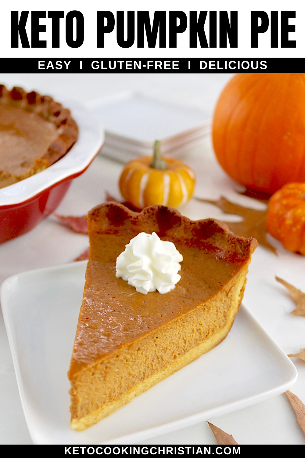 This easy to make Keto Pumpkin Pie is silky smooth, full of cozy pumpkin deliciousness, and baked in a tender flaky crust. This gluten-free holiday dessert tastes amazing and is always a hit at any gathering.