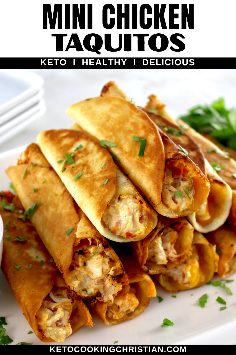 These easy Mini Chicken Taquitos are packed with creamy cheesy chicken and rolled in soft low carb tortillas. They fry until crisp with a soft and gooey center, making a delicious quick meal or snack the whole family will love.